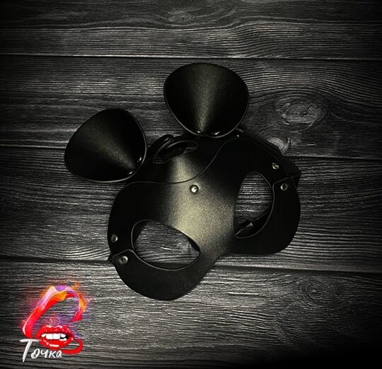 Маска из черной эко кожи. Для всех типов лица. Размер регулируется пряжкой.